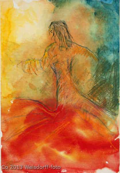 Gennem flere år har jeg med stor fornøjelse set vild med dans tv2, fordi jeg selv går meget op i dans. Det er dog mest flamencodans, og det er også den store inspiration i malerierne.