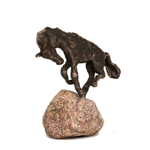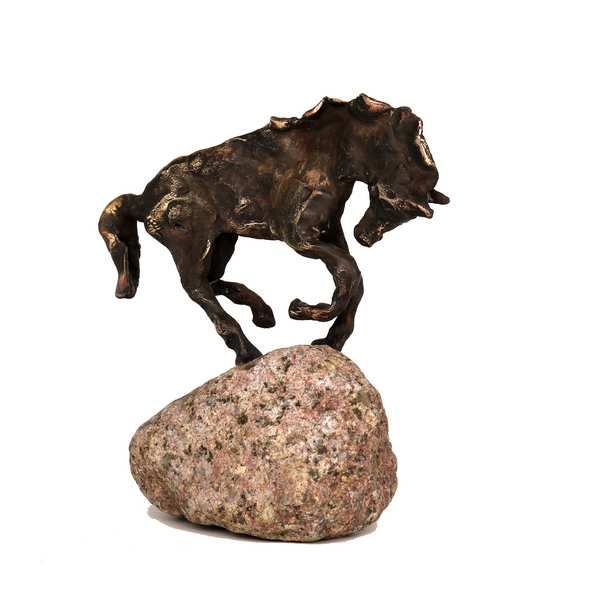 Unika cire perdue støbt bronzeskulptur monteret på natursten
