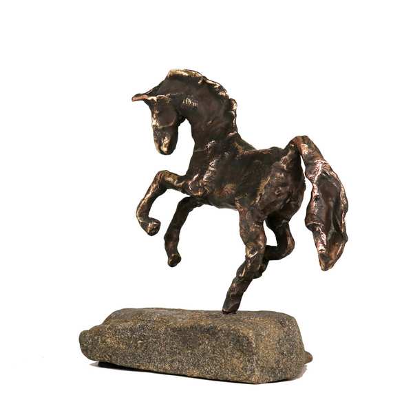 Hest i bronze på flad sten