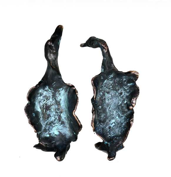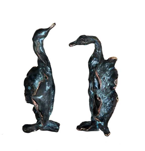 Samtale – to næbbede bronzeskulpturer